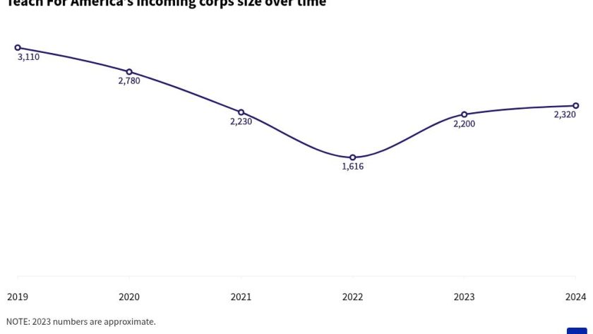 TFA has been working to regain its footing in the teacher-preparation landscape after a turbulent few years. The nonprofit—which boasted a nearly 6,000-member class of incoming corps members in 2013—hit a low of about 1,600 incoming corps members in 2022 and has been trying to rebuild its ranks ever since.